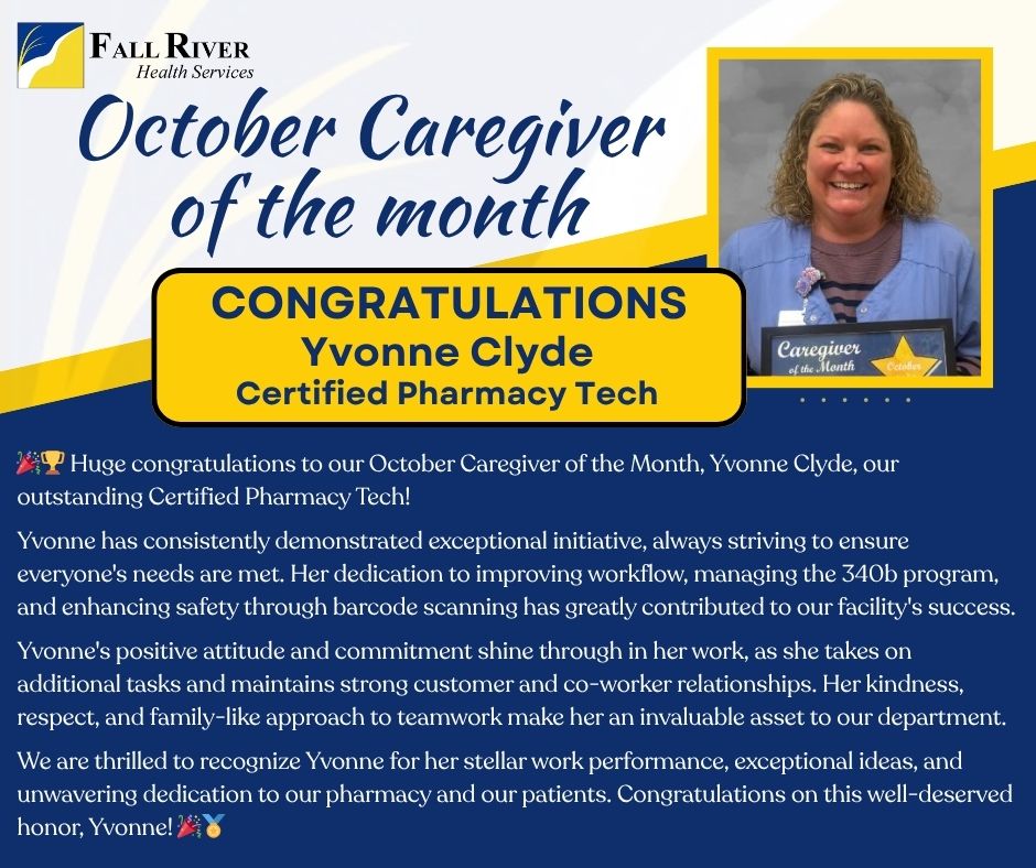 Hats off to Yvonne Clyde, our Certified Pharmacy Technician, on being named the October Caregiver of the Month! Yvonne's exceptional work ethic, professionalism, and dedication to patient care make her a well-deserving recipient of this honor. We are grateful for her outstanding contributions and look forward to seeing all the remarkable things she'll continue to accomplish in the future. Congratulations, Yvonne!